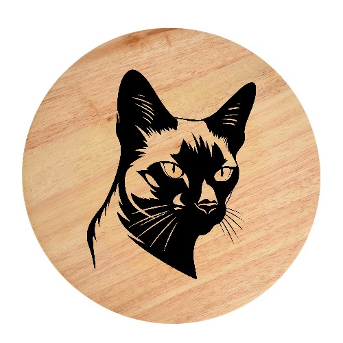 Tablou gravat pe lemn, pisica rasa ‘Siamese 2’